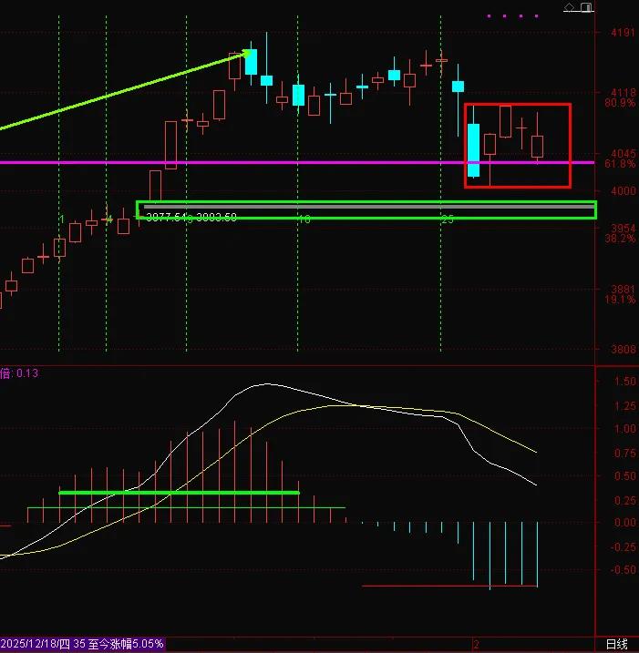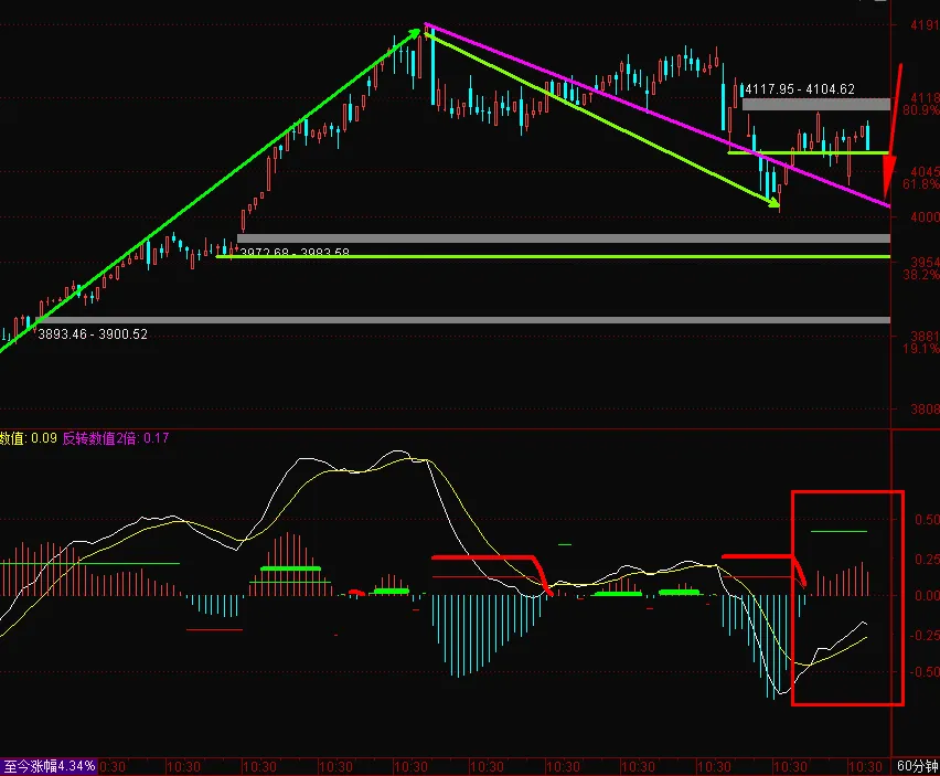 这个已经说过很久了,也就是这里有柱状背离的影子了。以目前看只要不能过1月高点,那需要击穿3800确立月线3K~除非出现暴力月线2B下破,否则都需要再次进行一个回拉,只要有3980下方实体阴线的周线走势,就意味周线的顶出现!现在回头看数字64即是一个助涨时间点也有高点特征,需要有一根4120以上的阳线就可以确认日线3K成立。还是可以构筑底部,还有可能形成弱势的反转介入点特征。也就是是否可以30分内收上去确立3k介入点继续上升。那就是要向下调整,你就看好30分是否出介入点就好。只要出现大力度向下破位就表示这里运行到大c的下跌结构,部分成功案例具有片面性、不代表所有,过往涨幅不预示未来,投资者需自主判断,风险自担”下面视频链接~