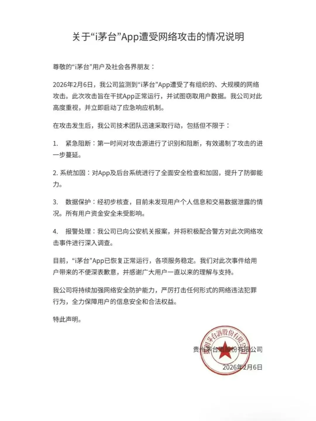 最近几天i茅台App时不时崩溃,让不少人抢购的时候很苦恼。这说明还是大家抢平价茅台太猛。服务器负载过高,无法承受大量的访问请求。服务器可能会因为过载而崩溃。之前,i茅台还发布了一个非法拦截数据,2026年1月1日至今,平台已成功拦截各类异常行为4.26亿次。什么概念,他们每天通过拦截、修改和重发数据来实现抢购的目的,可见外挂党还是太猖狂了。i茅台作为一个直面消费者的平台,这些都非常影响消费者的申购体验。如果不加强管理的化,i茅台恐怕反而会沦为黄牛狂欢的天堂,扰乱市场正常秩序。