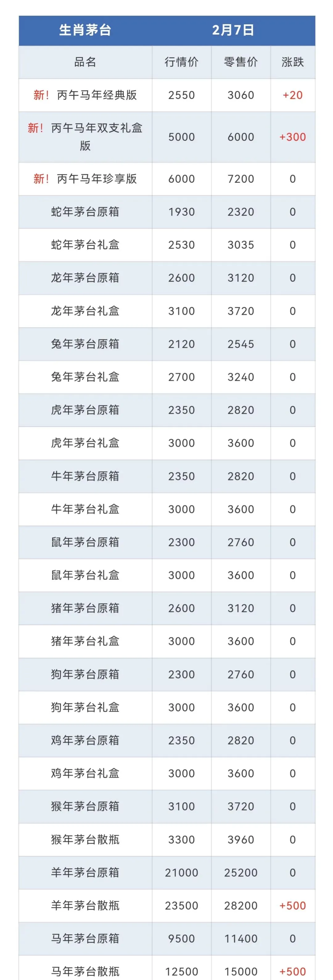 ※行情价:酒商调货价,不考虑物流运输人工成本,每个地区调货价有几十块浮动属正常现象。