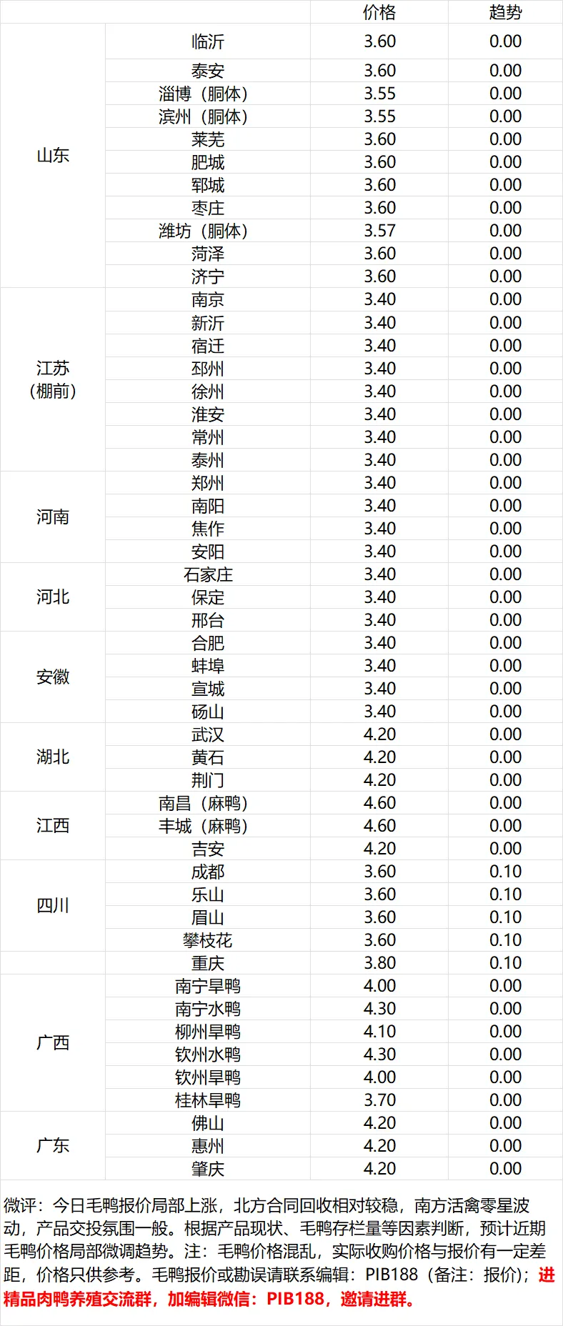 【麻鸭】广东1.8,广西1.7,江西1.7,