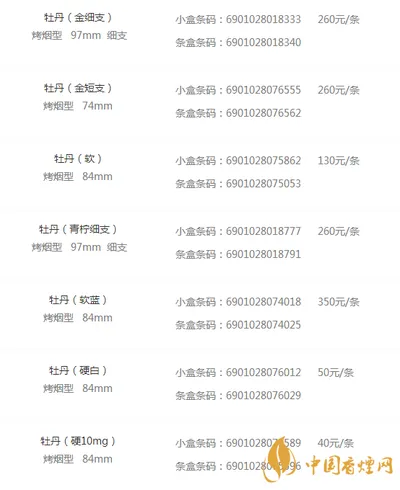 图注:牡丹系列香烟价格对比表,可见牡丹(333)的价格显著高于其他牡丹产品
