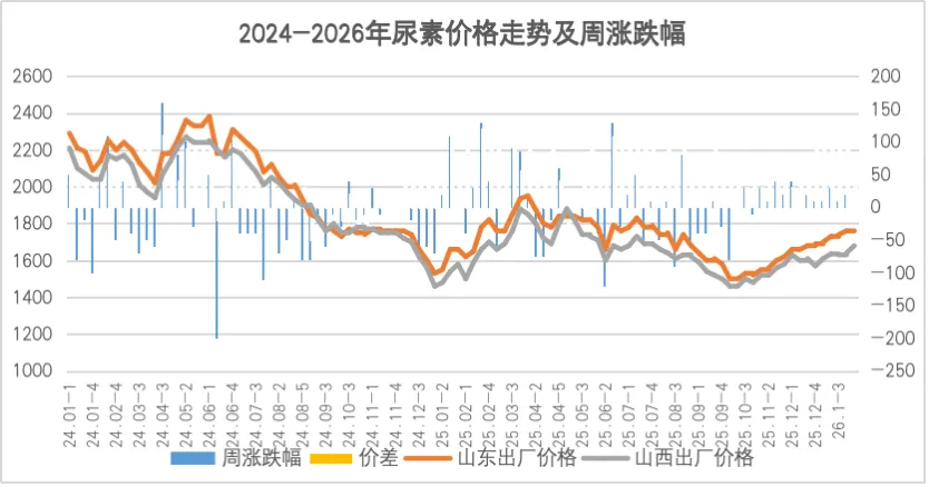 本周尿素市场平稳运行,农业需求承接短期缺位的工业需求,叠加期货周中反抽,上游订单因此得到补充,价格表现极为坚挺,并未受期货下行影响,日产、物流等利空因素虽有显现,但本周对市场未形成影响。山东、河南地区主流出厂价1720-1760元/吨,同上期持平。