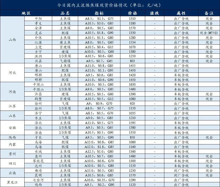 2026年2月7日国内动力煤市场呈现“产地稳、港口涨、进口煤飙至年内高点”的分化特征,港口冶金焦价格下跌10,焦煤市场活跃度降低;临汾尧都区市场炼焦煤价格下降10元/吨,高硫强肥煤A10.5、S4.1、V31、G100、Y40、CSR75、Mt10出厂价现金含税1150元/吨。具体分析如下: