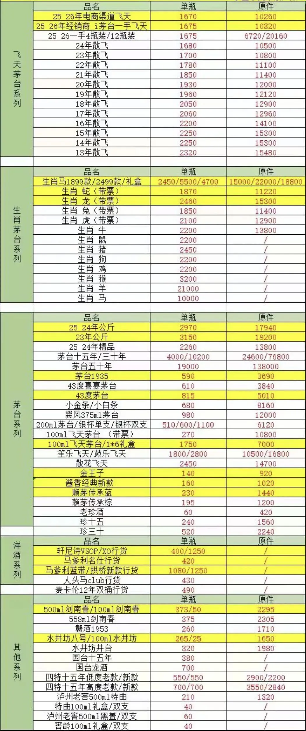 由于白酒飞天茅台价格存在实时变化、地区差异等原因,报价仅供参考。