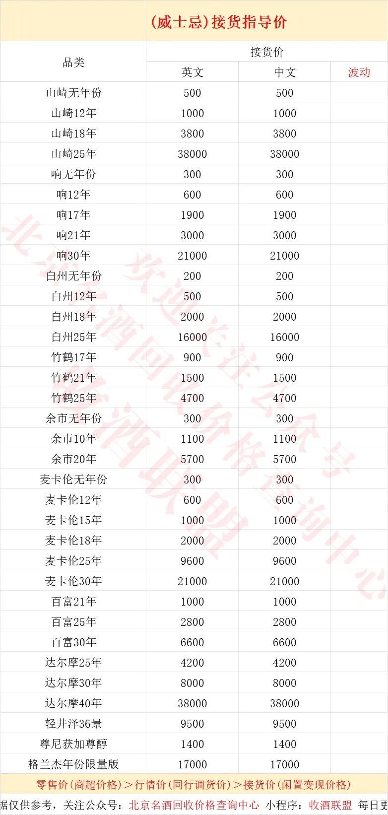 一般低于行情价,是面对消费者闲置名酒回收的价格,受外观品相、包装配件齐全、酒液位置、酒品二次销售难易程度的影响。