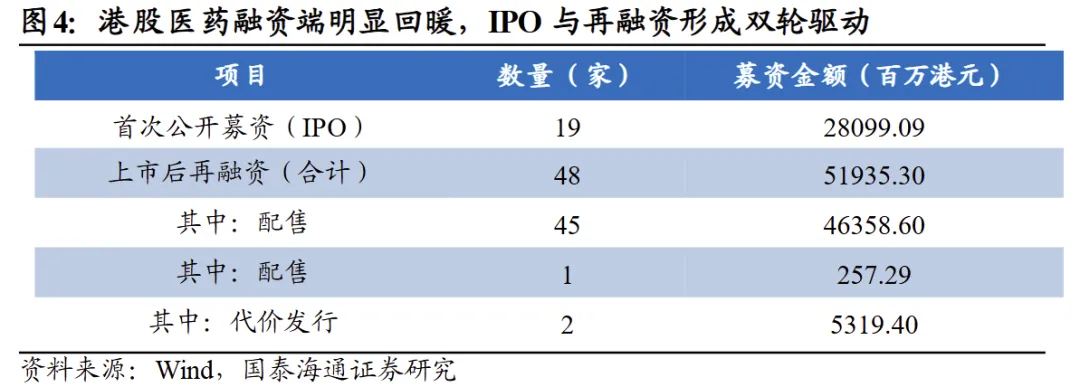 港股医药融资通道也全面恢复,IPO与再融资形成双轮驱动。融资主体多为处于临床推进或管线扩展阶段的创新药企业,募资资金重点投向临床试验、注册申报等核心环节,进一步推动研发需求向CRO行业传导。