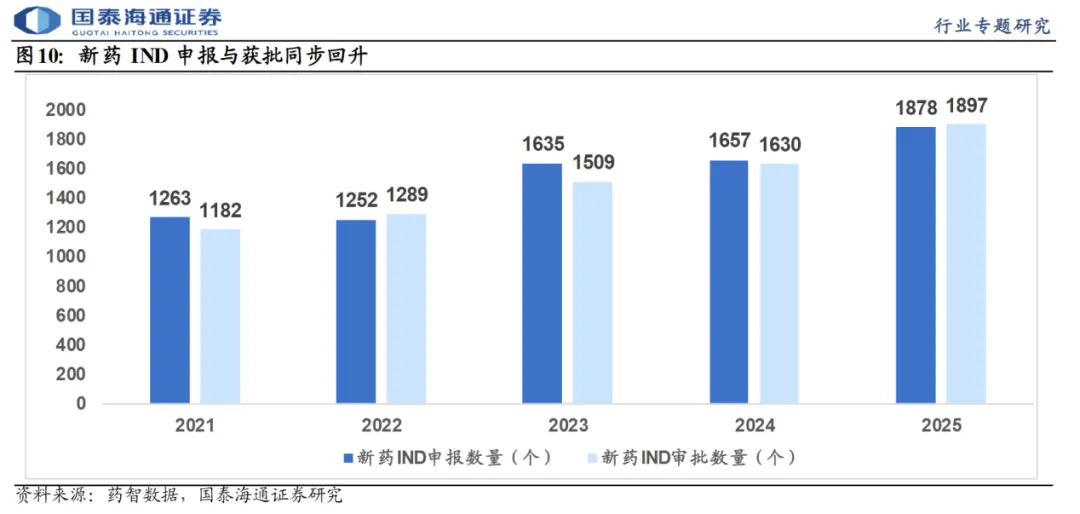 2025年创新药研发端迎来实质性复苏,IND申报量价齐升,审评审批效率大幅优化,临床项目推进节奏加快,为CRO行业带来持续且高质量的订单来源。