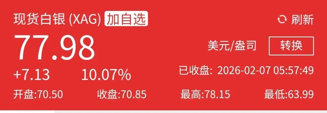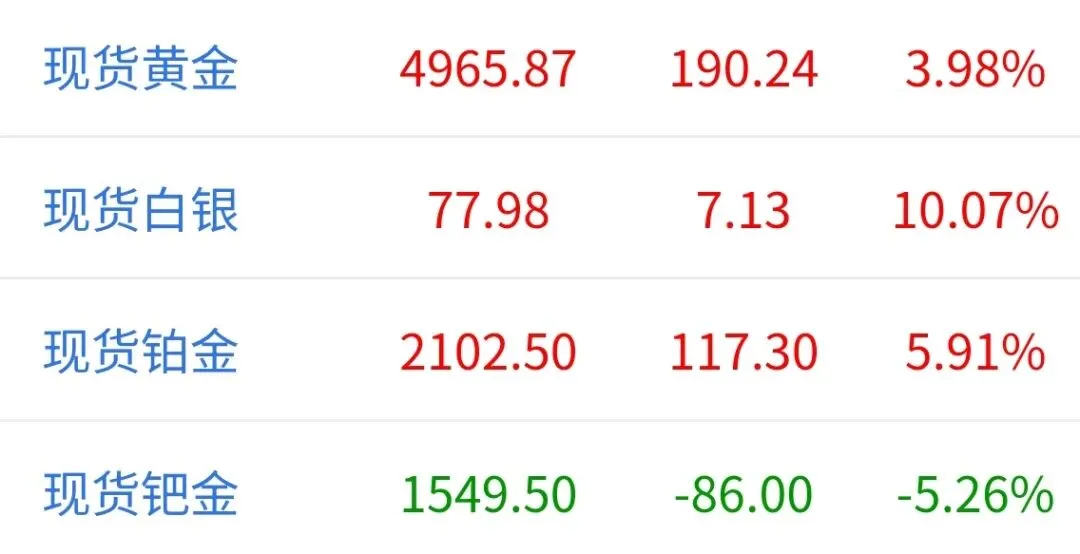 2月7日,今日金价行情大盘实时走势更新,现货黄金暂报4965.87美元/盎司,中国黄金价格1110元/克,品牌周大福、周六福、周生生、老凤祥等金店首饰暂报1477-1500元/克,回收1028-1106元/克,现货白银价格77.98美元/盎司(约17.40元/克)