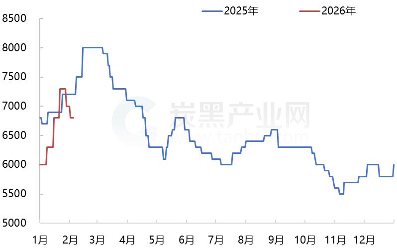 炭黑N330价格走势对比图(元/吨)