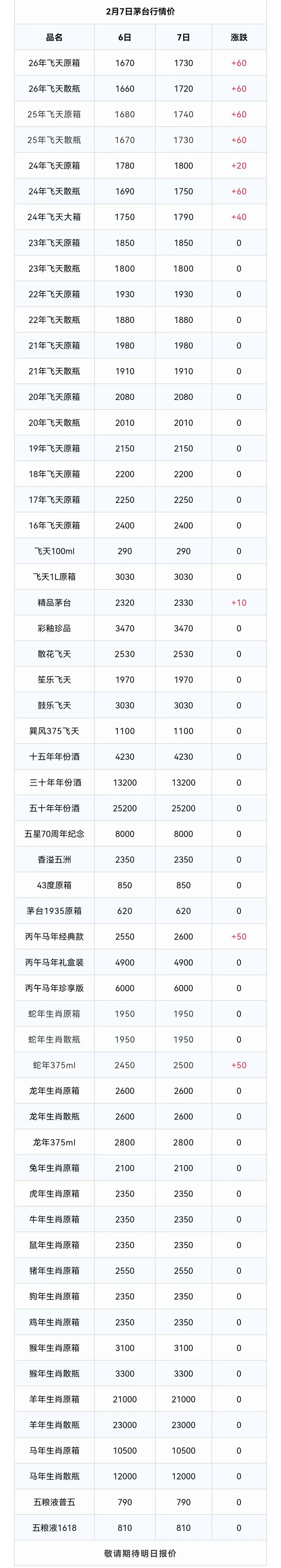 最新价格 | 2月7日 茅台行情!