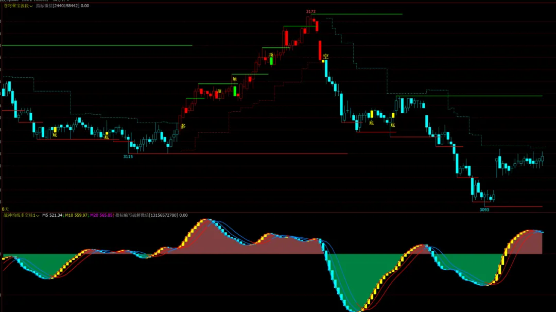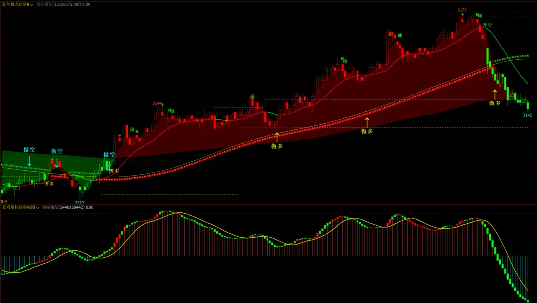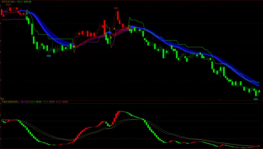 2、苍穹买卖力道主图 凤凰红绿波段线柱