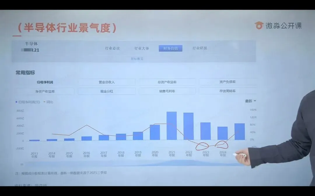 半导体行业景气度的归母净利润在2023年度就已经有了拐点
