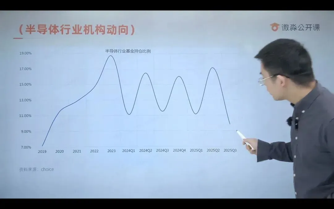 主动偏股基金半导体行业仓位自2019年开始拐头向上