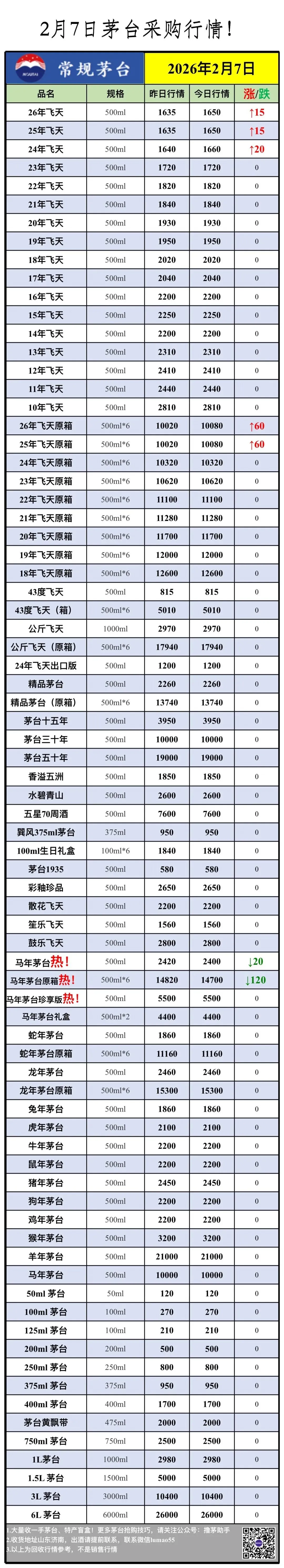 【今日茅台行情】2026年02月07日:2025年飞天茅台原箱单日大涨60元,最新报价1810元