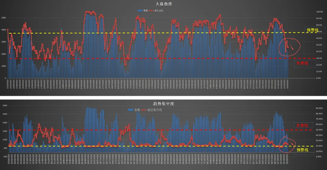 ,大盘热度2月2日跌至最低39%,5日线个股数也在2月2日跌至蓝线,鉴于大盘的成交金额仍高于2万亿,市场的阶段性调整已经完成,节前的市场情绪会相对好一些。但是从5日线个股数的每周波动看,市场每个月都有调整,春节后的行情大概率还会有一次回踩。