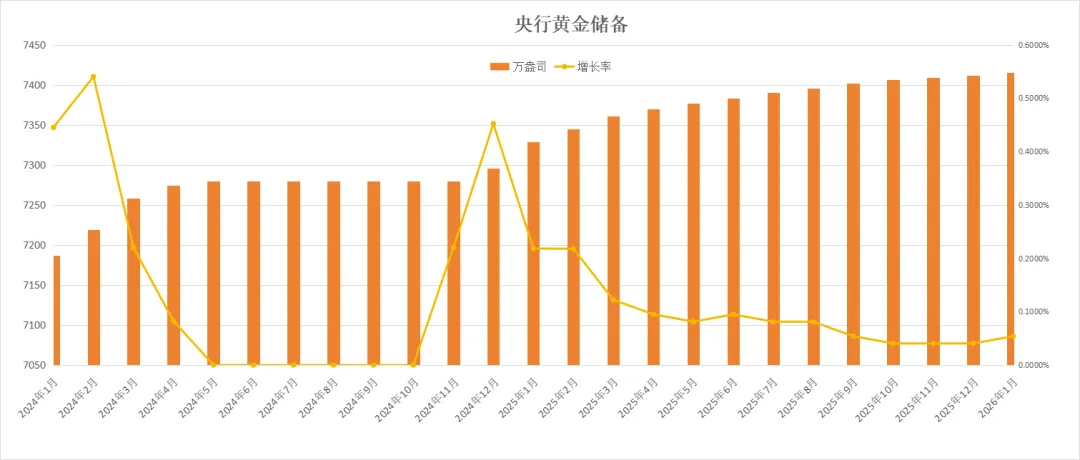 资金面上:央行货币公布1月新增4万盎司黄金储备,连续15月增持黄金,较25年Q4每月的3万盎司,进一步加量增持,这是对以贵金属为代表的大宗商品价格指数的托底!