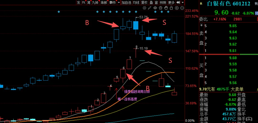 也就错过了满仓杠杆翻倍的机会,这也导致后面在最高位还是小仓位买入了白银有色,也是在第二天直接爆仓。
