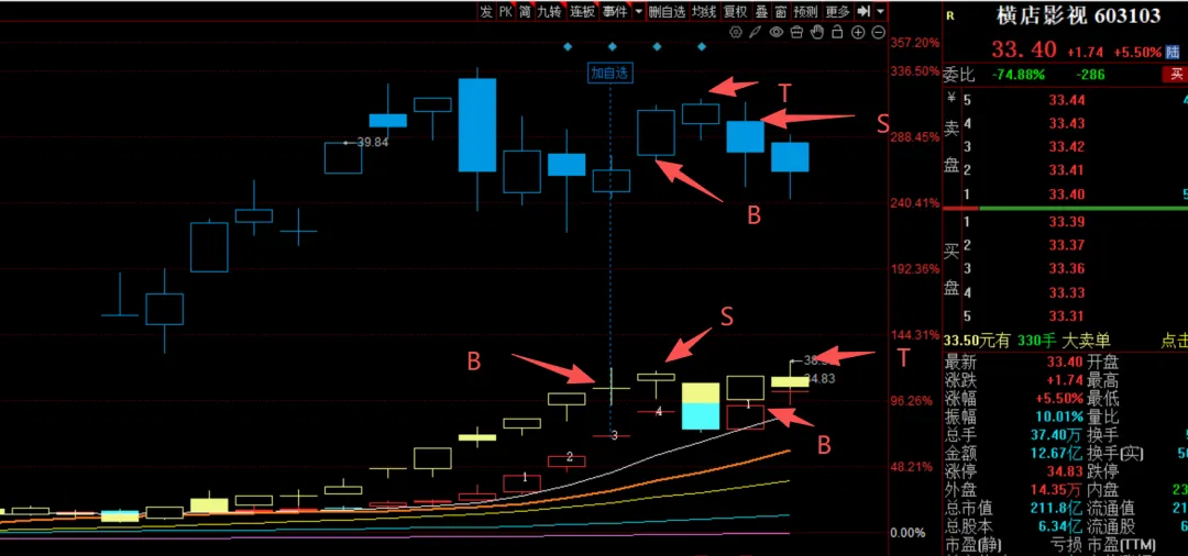 所以从周五的分时来看,最能代表合力的方向是横店影视。而且从尾盘的砸盘来看,也是杭电股份先开板而横店影视后开板,所以尾盘横店的恐慌,主观认为是一个过渡恐慌,毕竟这里并没有很多杀跌力量。