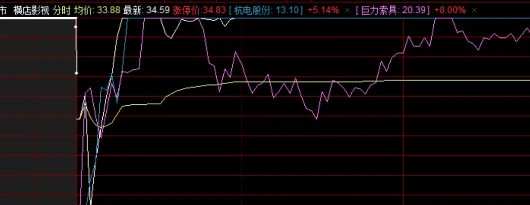 周五继续加仓,结果周五早上的局面比较混乱,都在抢反弹,但是文化传媒的跟风浙文互联、浙文影业都走的不怎么好,杭州解百还炸板了,反而巨力索具,直接继续上攻,包括前一日跌停的长飞光纤,还有杭电股份,也是陆续上板。但是横店影视由于盘子小,在辨识度中也是第一个9:38分上板。