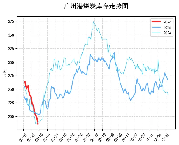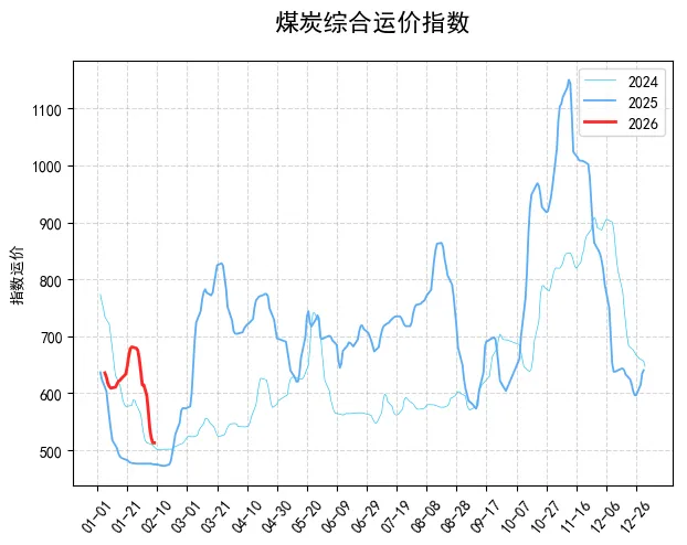 【进口情况】:最大的变数就是印尼那边的情况。印尼矿商因为2026年的生产配额还没确定,加上政府计划大幅减产,现在已经暂停了部分现货煤炭出口,这也导致国际煤价大幅上涨,印尼3800大卡煤炭的离岸价一周内从51美元/吨涨到59美元/吨,涨幅快16%,澳洲5500大卡煤炭也从75美元涨到83美元。不过对咱们国内影响不算太大,因为咱们从印尼进口的煤炭里,长单占了90%,现货只占10%,就算现货完全切断,每月也就影响170万吨左右,对整体供需影响有限。另外,今天粤电的进口煤投标价也涨了,从上周的440元涨到458元,单周涨了约2美元,后续还要关注印尼配额政策的落地情况。