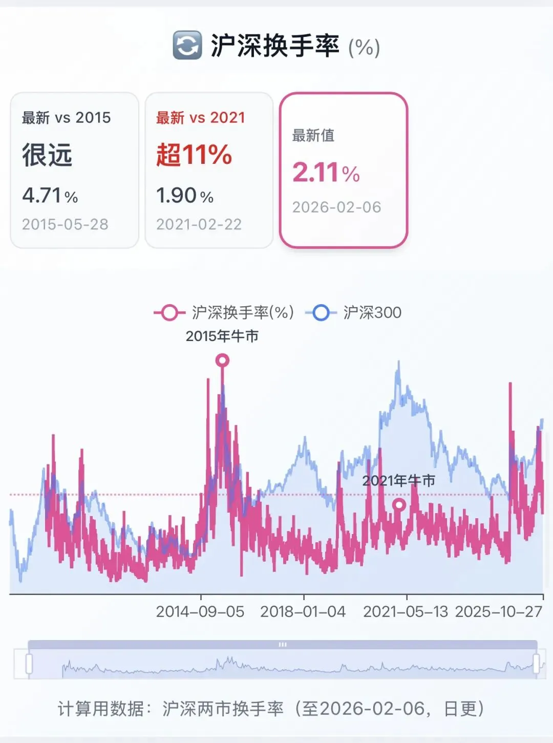换手率 2.11%( 2015极4.71%距离远;)