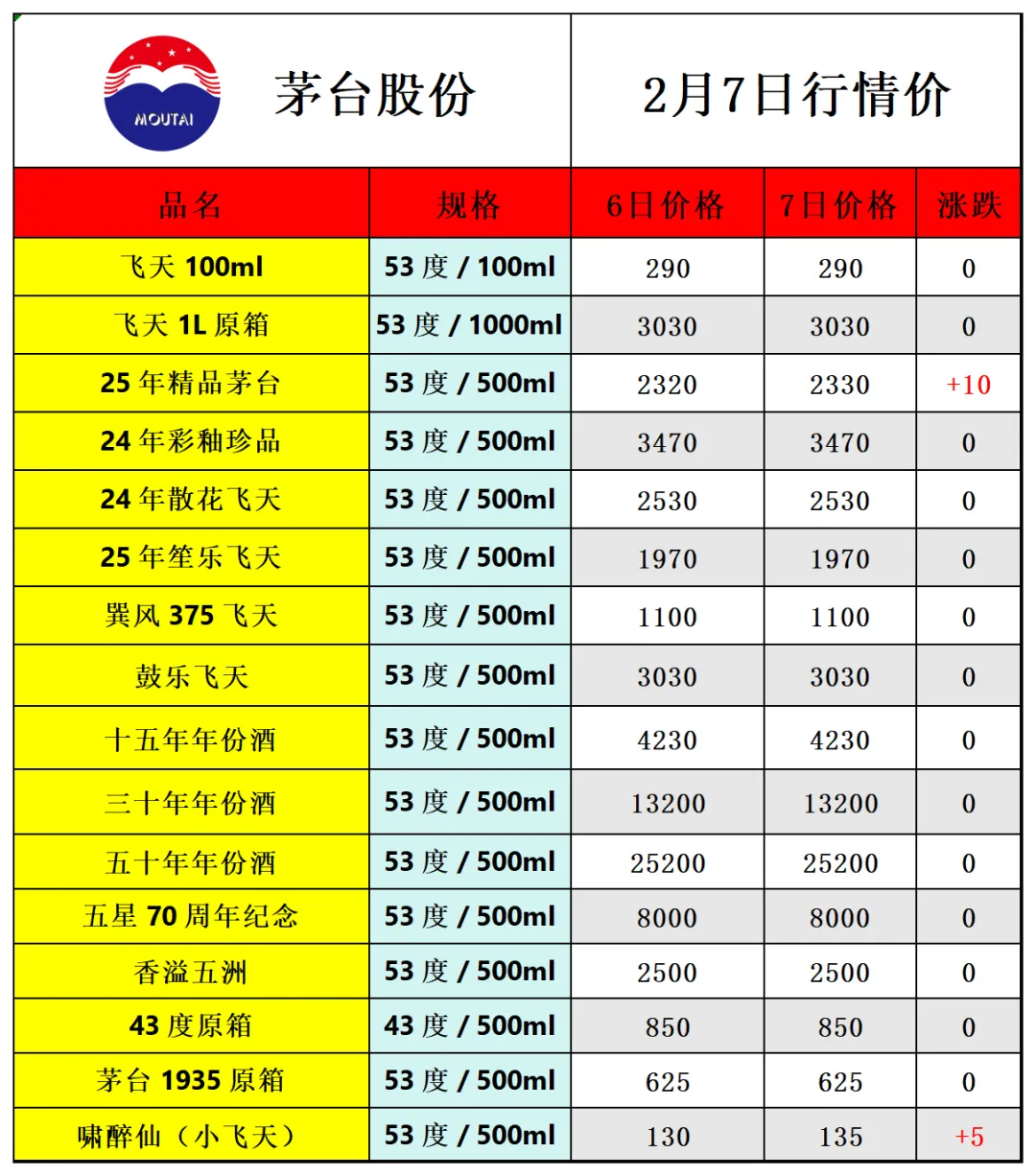 因各地行情有所不同,价格仅供参考!每天更新茅台价格,飞天茅台相关热点资讯,由于平台修改了推送规则,如若不想错过白酒市场行情报价参考, 请点击文章右下角的“在看”,推送会第一时间出现在订阅列表里,谢谢各位茅粉!
