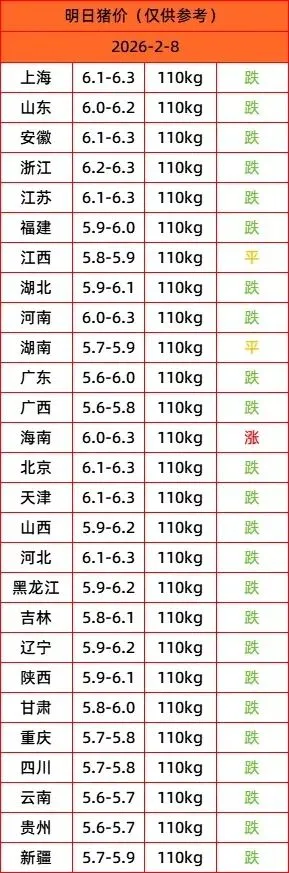 >2026年2月8日 明日猪价,最新猪价行情!