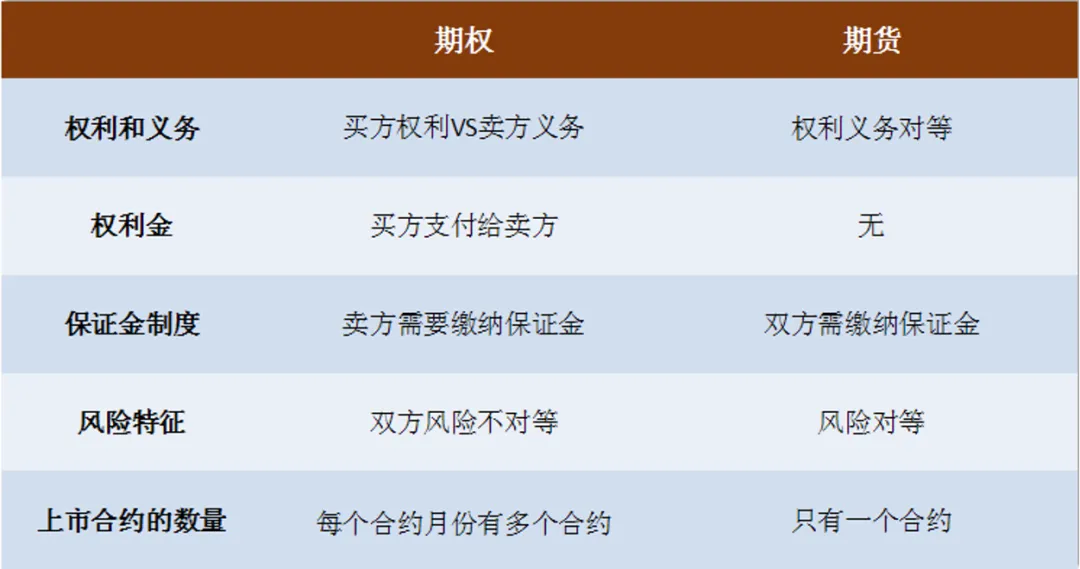 下面这张图就是期权VS商品期货简图,这样一对比,就很清晰明了
