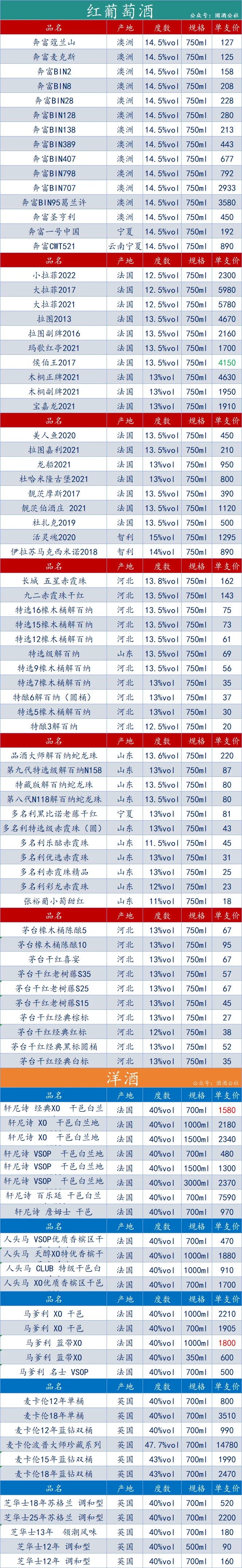 亲爱的酒友们,以上是我们整理的部分品牌数据,包括奔富、拉菲、张裕以及麦卡伦等,这些信息均来源于网络,仅供您参考。由于地区间的物流费用与经营成本存在差异,实际报价或许会略有不同。如果您有任何疑问,请随时扫描下方的微信二维码与我们联系,期待与您的交流!