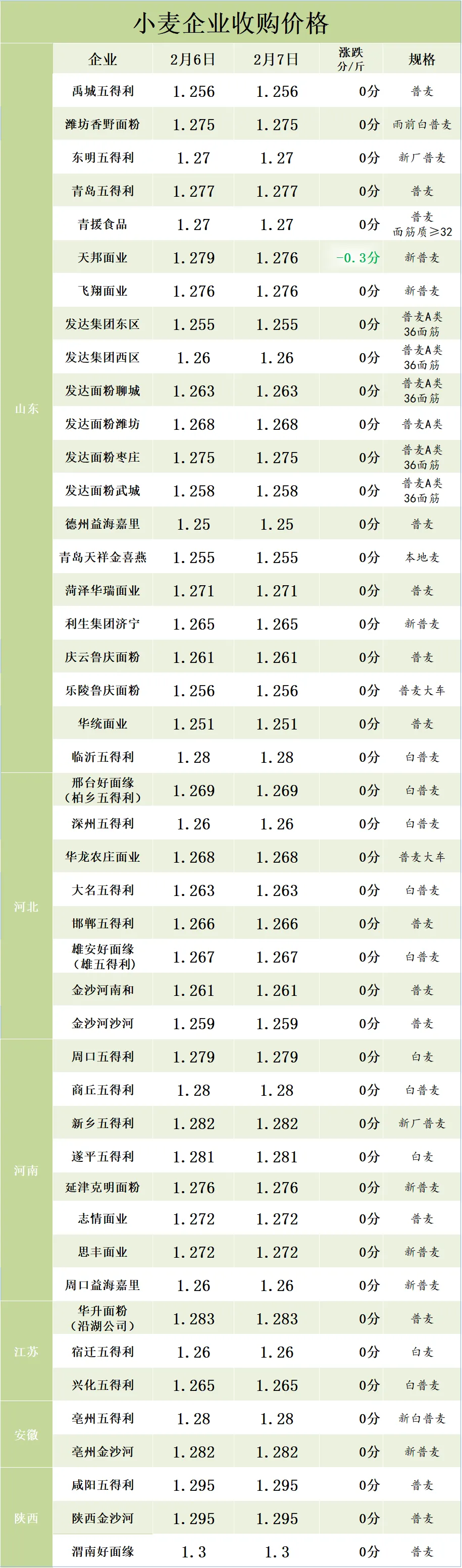 2月7日,国内小麦现货市场整体维持平稳,仅有极个别企业小幅落价!全国面企小麦收购价格均值1.2701元/斤,山东面企小麦收购价格均值1.2651元/斤。距离小年还剩一周左右的时间,部分主体出于资金和年后风险考虑,抓紧最后时间,陆续变现。而节前面粉行情难有明显起色,年后面粉消费进入淡季,抑制制粉企业追高大量采购的积极性。故而局部门前到货量回升的企业趁机小幅压价收购。不过整体来看,市场情绪较为稳定,持粮主体惜售与择机出货并存,而部分原粮库存偏低的制粉企业为保障节日前后生产,进行刚需采购,对小麦价格也有支撑。政策端方面,各级储备小麦拍卖稳步投放,增加市场有效供给,稳定市场预期。接下来随着年关临近,物流停滞,市场实际购销活动时间所剩不多,小麦市场将逐步进入平静期。此外,小麦产情方面,截至1月底,小麦一二类苗占比59.3%,较冬前增11.9个百分点,但仍差于常年、差于上年,苗情类型复杂,春季促弱转壮难度大、任务重。