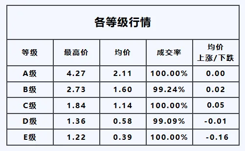 A级——最高价4.27元/枝,均价较昨日,持平;