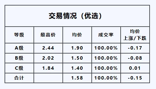 C级——最高价1.84元/枝,均价较昨日,上涨0.04元/枝。