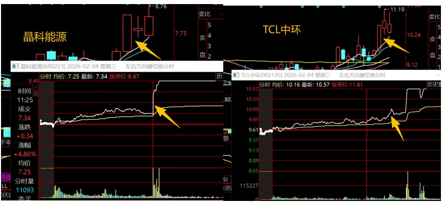 事实上光伏的晶科能源、tcl中环等盘中有公告的,也只能做3到7个点幅度。