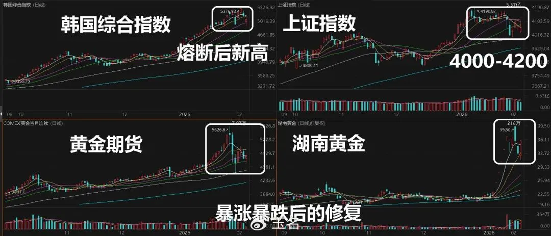2月行情开启,受到贵金属大宗商品期货大跌的影响,A股的资源股也是集体的跳水,拖累指数向下。实际上,韩国股市直接就出发熔断,是更猛的。从这个角度来看,A股算是温柔了。周二,熔断后韩国股市一度大涨7%,A股也是迎来了阳线,市场整体保持4000-4200点的拉锯还是大概率的。不过,我们要注意的是量能快速萎缩了,这说明有些资金跑了,并没有回来,还是有所谨慎的。或者说,反弹对一些高位品种来说是减仓降低仓位的机会,这也是要注意到 。