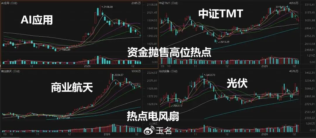 指数年初以来,即便是国家队抛售宽基也并没有带来像样的调整,本次算2026年来的首次。行业板块几乎全线下跌,贵金属、采掘行业、化肥行业、煤炭行业、有色金属、半导体、钢铁行业重挫。这是好事儿,因为在《春节前拐点效应,主线热点酝酿中》https://weibo.com/ttarticle/p/show?id=2309405261050642825294中介绍过,2月是不怕下跌的,哪怕是一波调整,反而是吸引资金形成机会。如今有相当的热点是被动跟随下跌的,资金泥沙俱下后也会有形成错杀,这样机会由此酝酿。