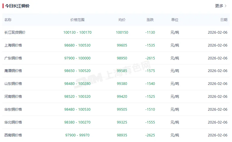>今日铜价多少钱一斤最新行情,长江铜价今日铜价走势图(2026年2月8日)