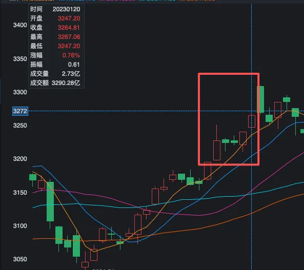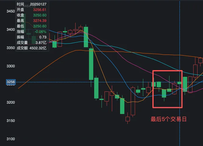 本周五,美股大涨,道琼斯涨2.47%,创历史新高,纳斯达克涨2.18%,标普500涨1.97%,扭转前期跌一周的趋势。与此同时,加密货品也大涨,英伟达涨超7.87%。那么下周一A股是否会跟上呢?我从多个方面做一个简单的分析最后一个交易日是1.27,红色方框部分为上证指数的5天的k线,5天跌了4天最后一个交易日是2.8,5个交易日内都是先跌后涨,最后以三根阳线结束最后一个交易日为2.10,前面两天跌了,后面连涨三天总的来说,这个时段存在一定的“红包行情”规律,但每年具体表现和市场主线差异较大。整体胜率较高,但波动明显:据统计,近5年上证指数春节前5个交易日的上涨比例达70%。不过,具体到单一年份,表现分化明显: