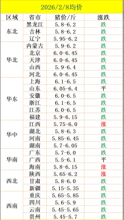 猪价行情!2026.2.9全国各地生猪价格早知道!