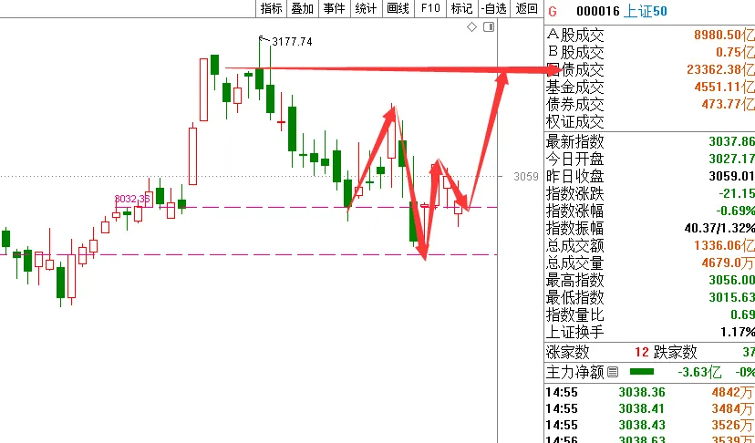 前段时间由于某队砸盘,我一直没有分析50指数,从上周开始,某队结束了砸盘,我开始分析分析50,并开始上车做多。