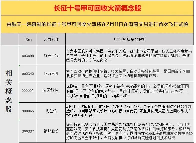 国内可复用航天器试验落地、上海加码万亿新赛道、亚马逊与SpaceX加速卫星部署,叠加太空算力、太空光伏想象空间打开,板块景气度持续上行。下周优先布局火箭3D打印、星间激光通信、卫星射频等高价值环节,以及低轨卫星订单明确的核心单机厂商;紧盯2月11日猎鹰9号载人发射、二代卫星招标等催化,规避纯概念标的,锚定技术壁垒与订单确定性。