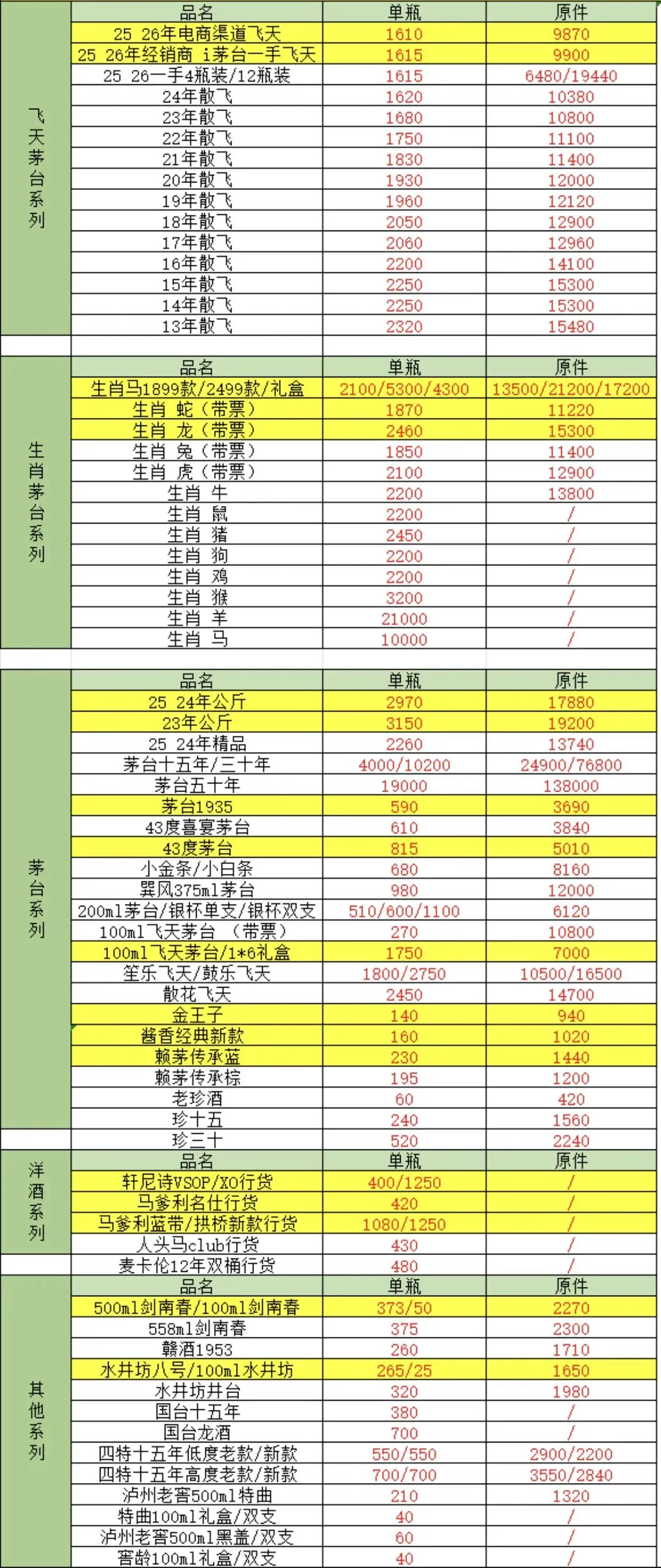 由于白酒飞天茅台价格存在实时变化、地区差异等原因,报价仅供参考。