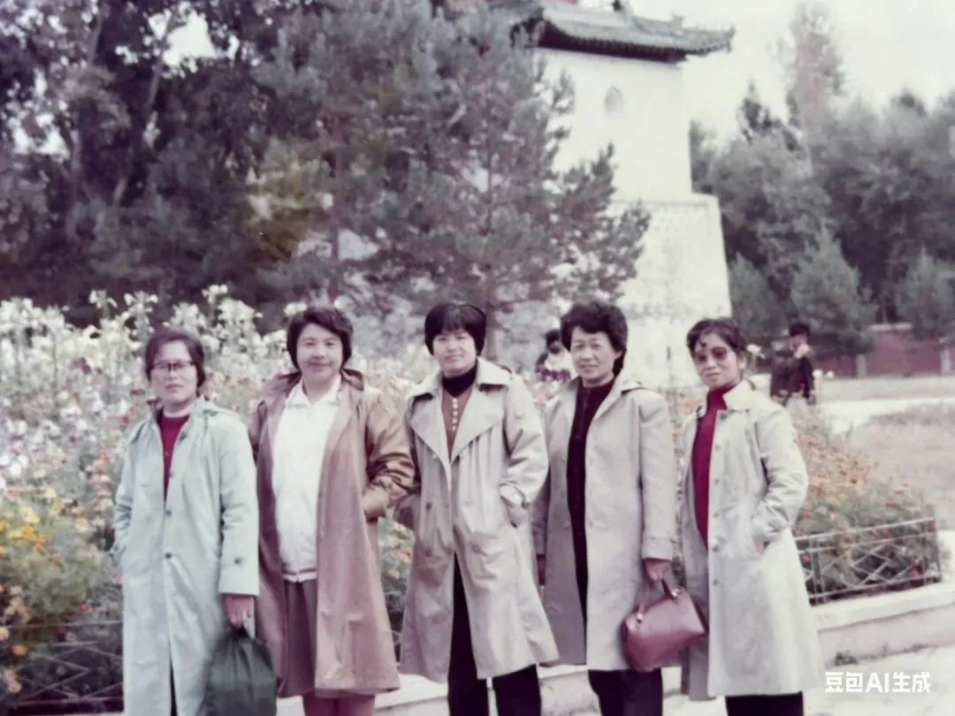 那是黑河农行会计师培训班的日子,农行干校组织我们去爱辉历史陈列馆参观。我们几个同事穿着当时最流行的风衣,站在馆前的花丛边,笑容里满是藏不住的朝气和对未来的憧憬。