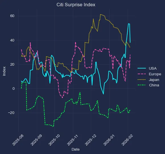 海外概况花旗经济意外指数:美国边际转弱,中欧边际反弹