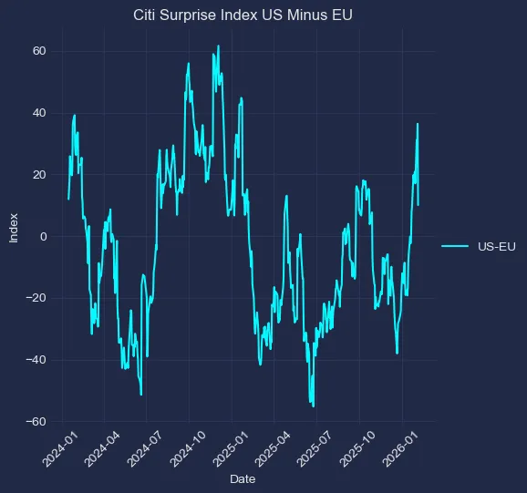 美欧花旗经济意外指数差值:边际转弱