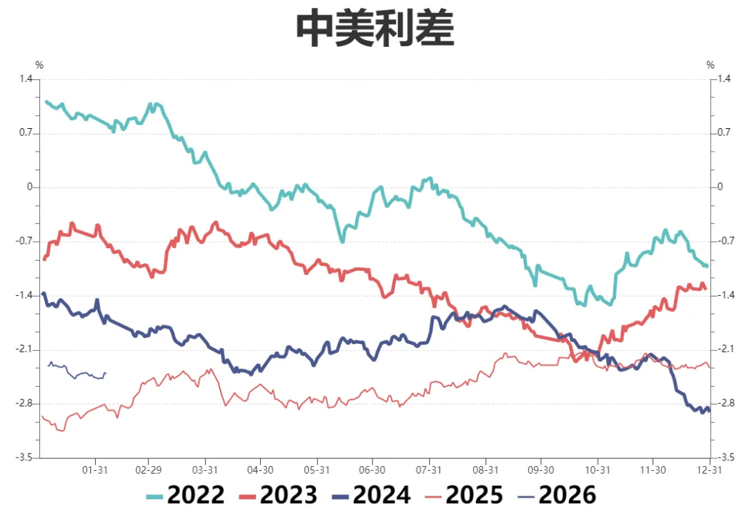 中美利差:边际反弹,周五收-2.41