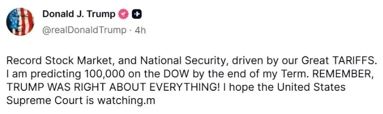 跟着特朗普发了篇推文说预期道指在他任期结束前(2029 年 1 月,3 年一倍)会突破 10000 点,这牛b 吹的大家应该都信了,熊猫是一直觉得
