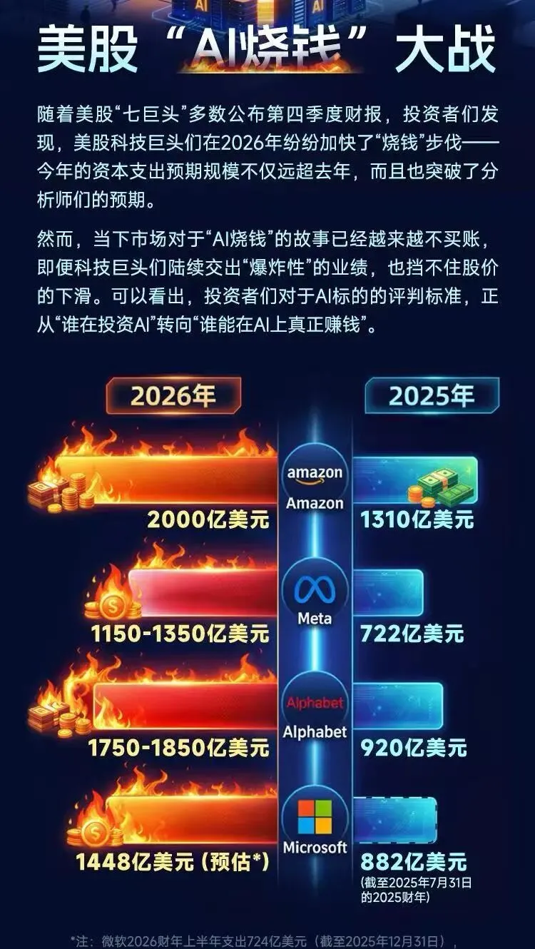 资本开支2000亿美元,对比 2025年的1310亿美元暴涨52.7%,对比市场预期的1466亿美元也高出36.9%,对比其他几个巨头也是继续碾压式的开支,至于理由是“