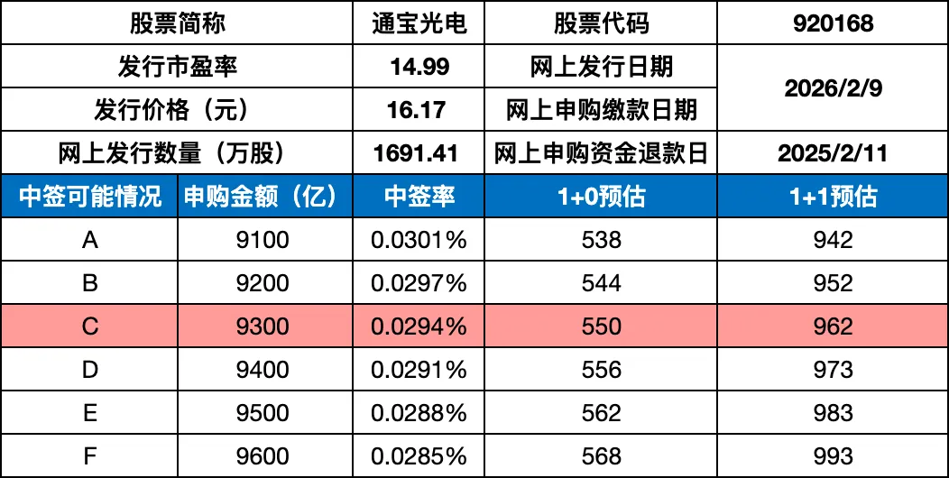 4,北交所新股通宝光电发行,基本面不用分析了,给大家发下申购预测,1 手 550 万,1+1 按 962 万,资金量低于参考值5% 的不建议参与。