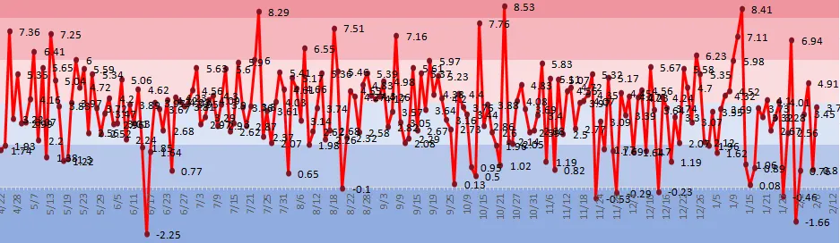 涨跌比:涨2547跌2444,涨跌比平衡,市场从弱到多方开始占优,涨跌比发生转变,蓄势上升,普涨行情酝酿,春节红包行情可期。