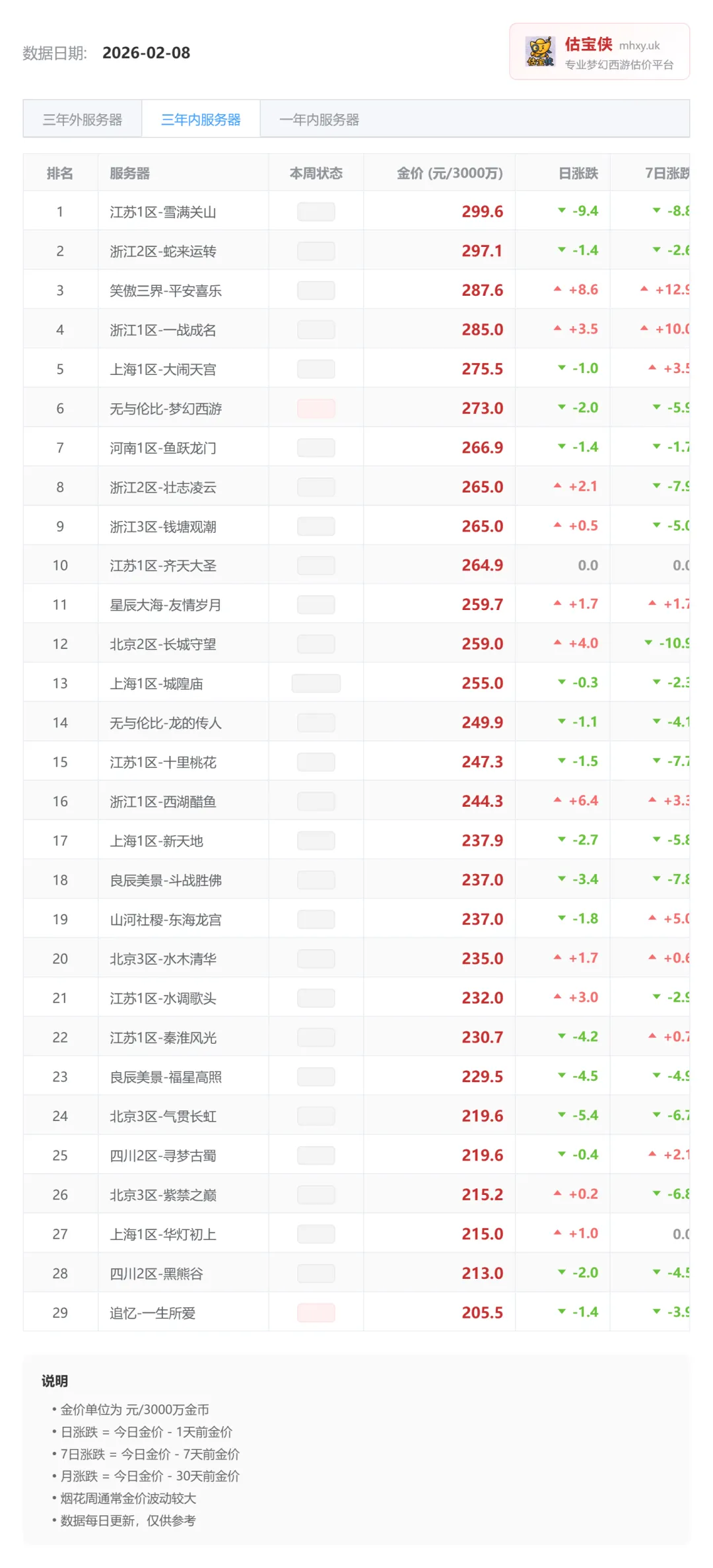 📊 本期梦幻西游账号 / 锦衣行情速览